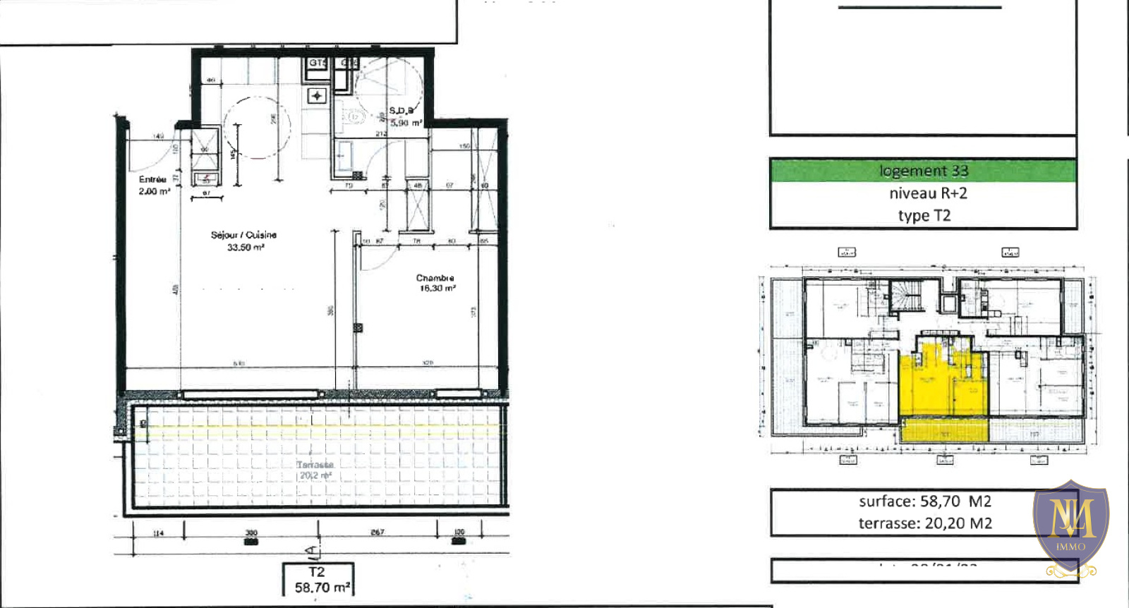 Hégenheim (68220)Au centre du village et proche de la frontière dans une petite copropriété année 2024, grand 2 pièces de 58,70 m² au 2ème étage avec ascenseur, comprenant : une entrée, une cuisine neuve équipée ouverte sur un salon séjour donnant sur une terrasse de 20,20 m², une chambre de 16 m², une salle d'eau équipée avec wc, un garage et une place de parking privé. Disponible.