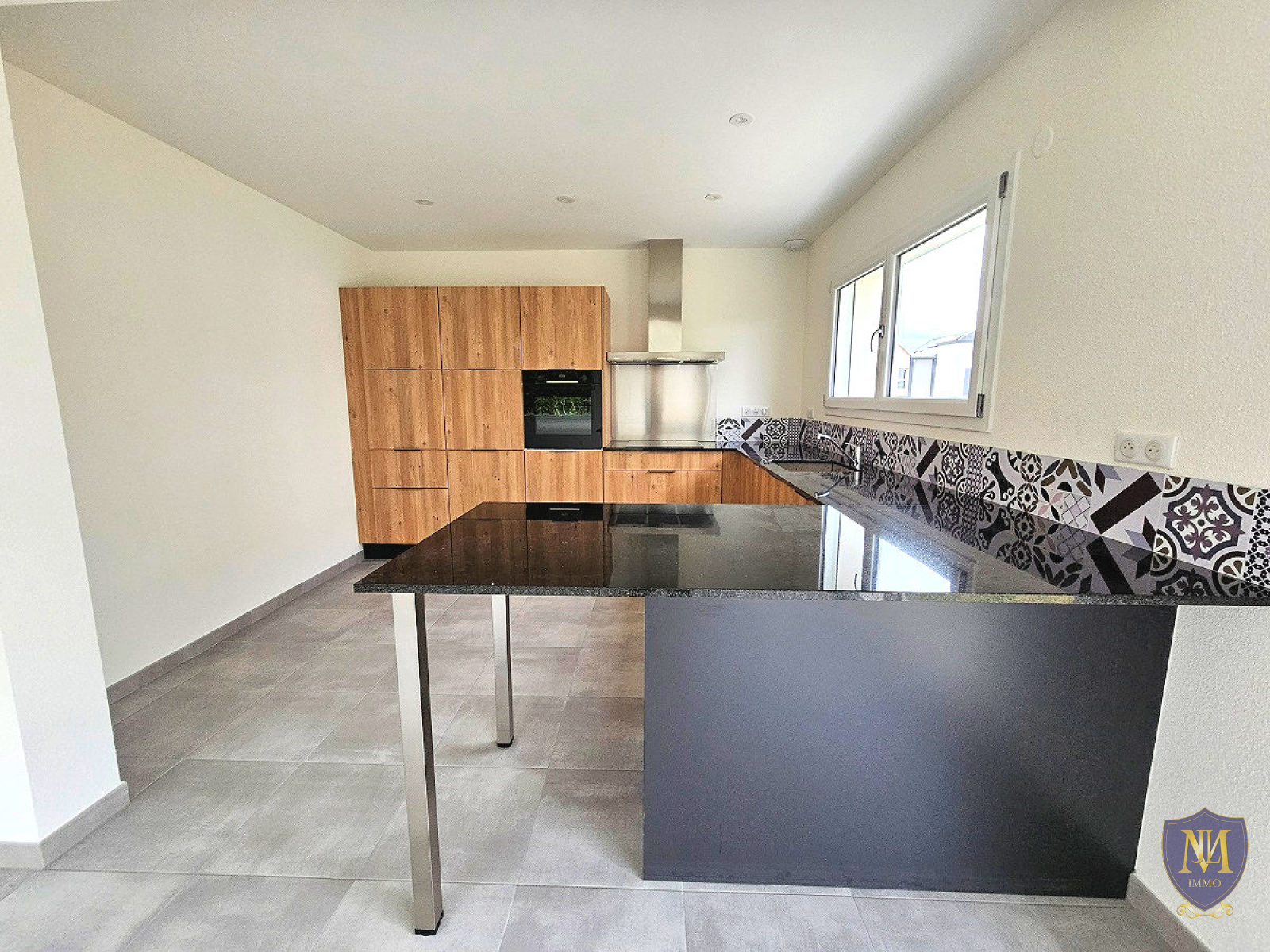 Habsheim (68440)Emplacement idéal au calme, à deux pas de l'école, belle maison neuve de 108,30 m² habitables, comprenant : une entrée avec armoire murale, une cuisine équipée ouverte sur un salon séjour donnant sur une terrasse et jardin, 3 chambres dont une parentale avec dressing + salle d'eau équipée, un bureau, une salle de bains équipée, un sous-sol complet avec coin buanderie et 2 grandes pièces. À l'extérieur un double garage avec accès à la maison ainsi que 2 places de parking complètent ce bien. Le tout sur 4,81 ares de terrain. Disponible : Juillet 2024.