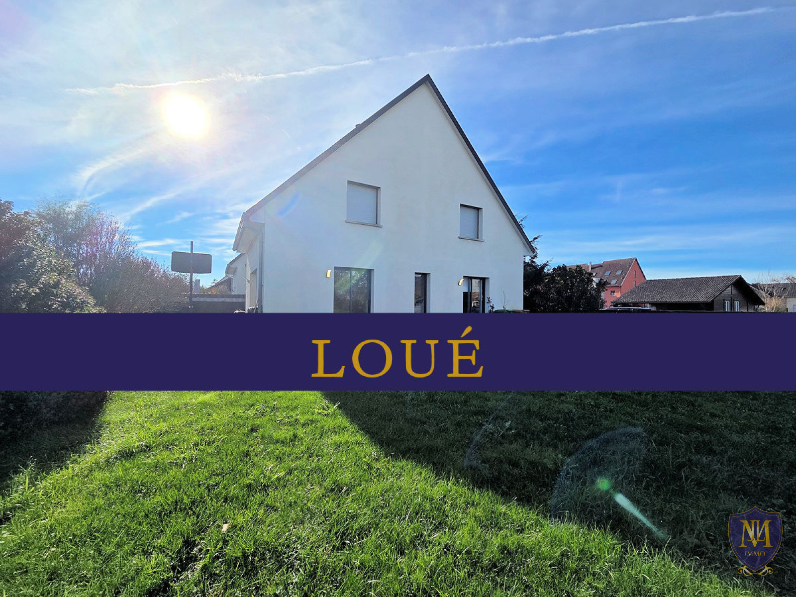 Blotzheim (68730)Situation calme, agréable maison jumelée par le garage année 2011 d'environ 125,94 m², comprenant : une entrée avec armoire murale, une cuisine équipée neuve donnant sur une terrasse et semi ouverte sur un salon séjour donnant sur une seconde terrasse, un wc séparé. À l'étage 2 grandes chambres avec armoire murale, une chambre avec armoire murale et une salle de bains équipée baignoire/douche + wc. Au sous-sol une pièce multifonctions chauffée et une buanderie avec coin technique et rangements. À l'extérieur un garage avec accès direct à la maison ainsi que 2 places de parking viennent compléter ce bien. Le tout sur un terrain de 4 ares. Disponible de suite. Possibilité de louer meublé.