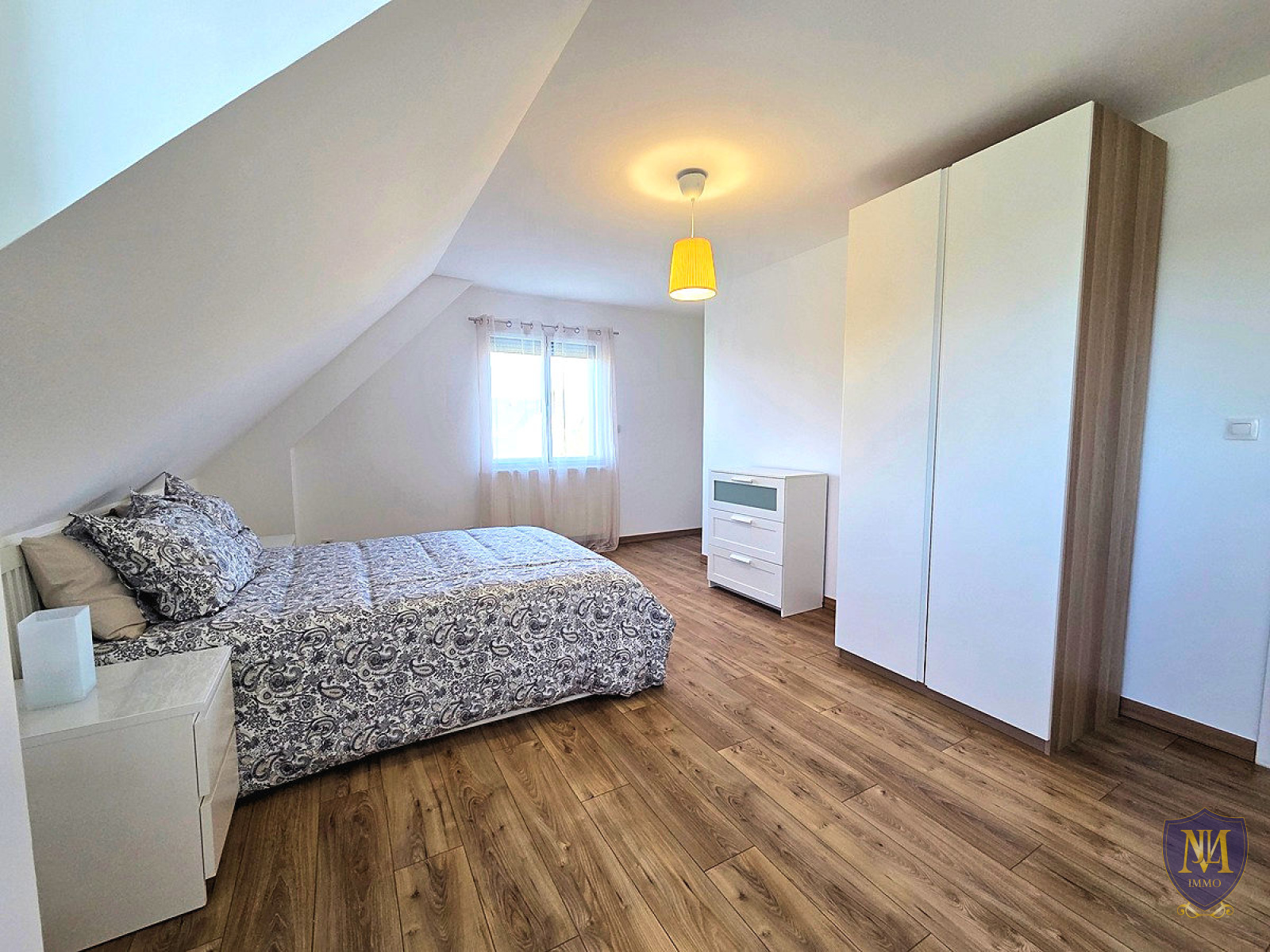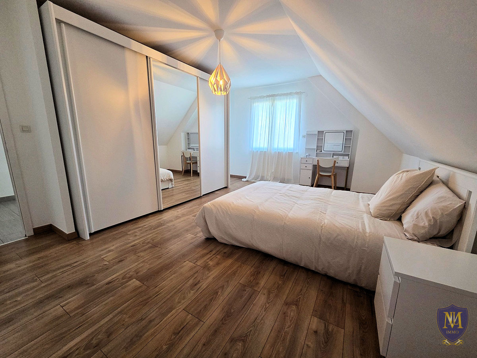 Blotzheim (68730)Situation calme, agréable maison jumelée par le garage année 2011 d'environ 128 m² meublée, comprenant : une entrée avec armoire murale, une cuisine équipée neuve donnant sur une terrasse et semi ouverte sur un salon séjour donnant sur une seconde terrasse, un wc séparé. À l'étage 2 grandes chambres avec armoire murale, une chambre avec armoire murale et une salle de bains équipée baignoire/douche + wc. Au sous-sol une pièce multifonctions chauffée et une buanderie avec coin technique et rangements. À l'extérieur un garage avec accès direct à la maison ainsi que 2 places de parking viennent compléter ce bien. Le tout sur un terrain de 4 ares. Disponible de suite.