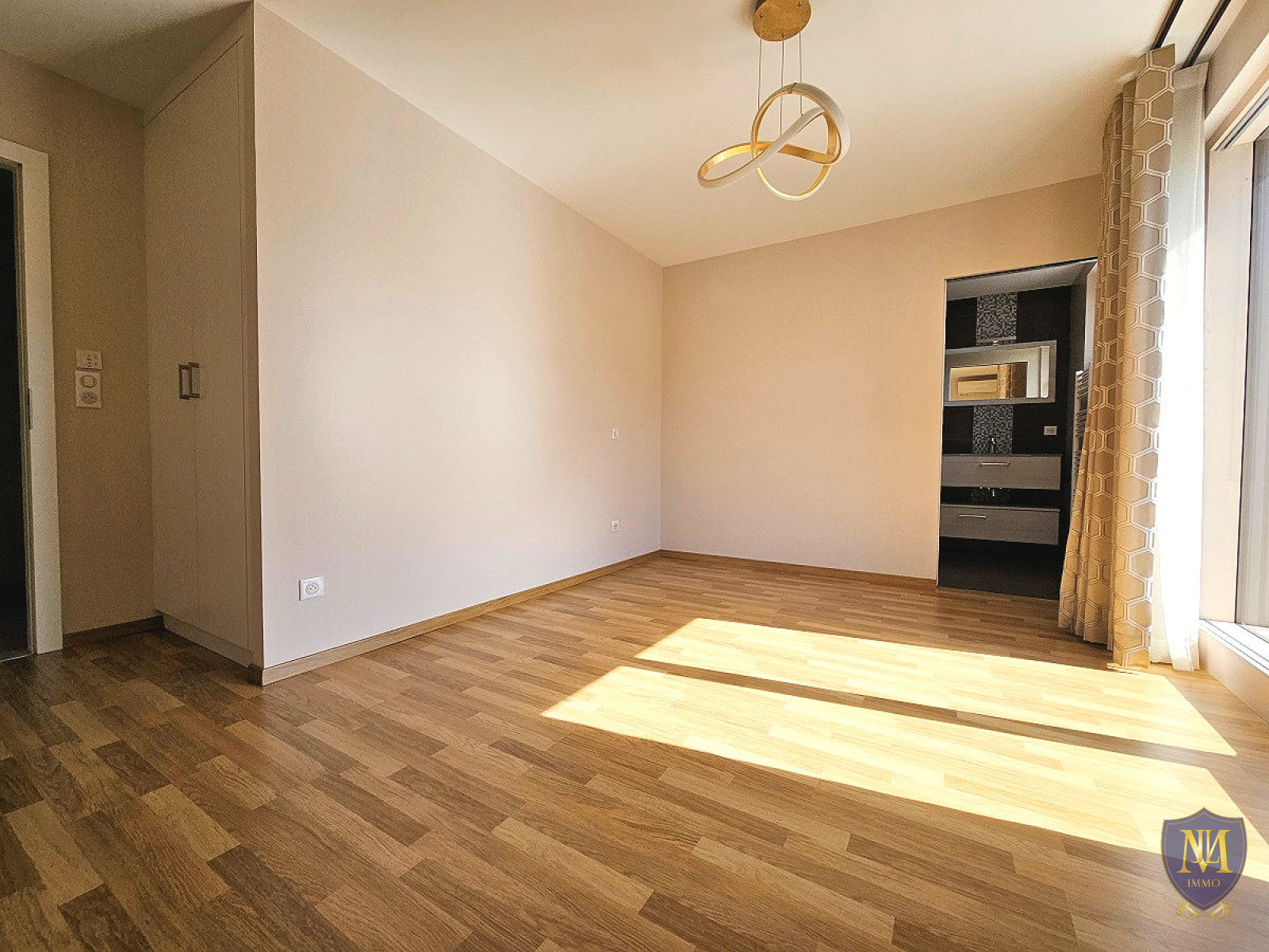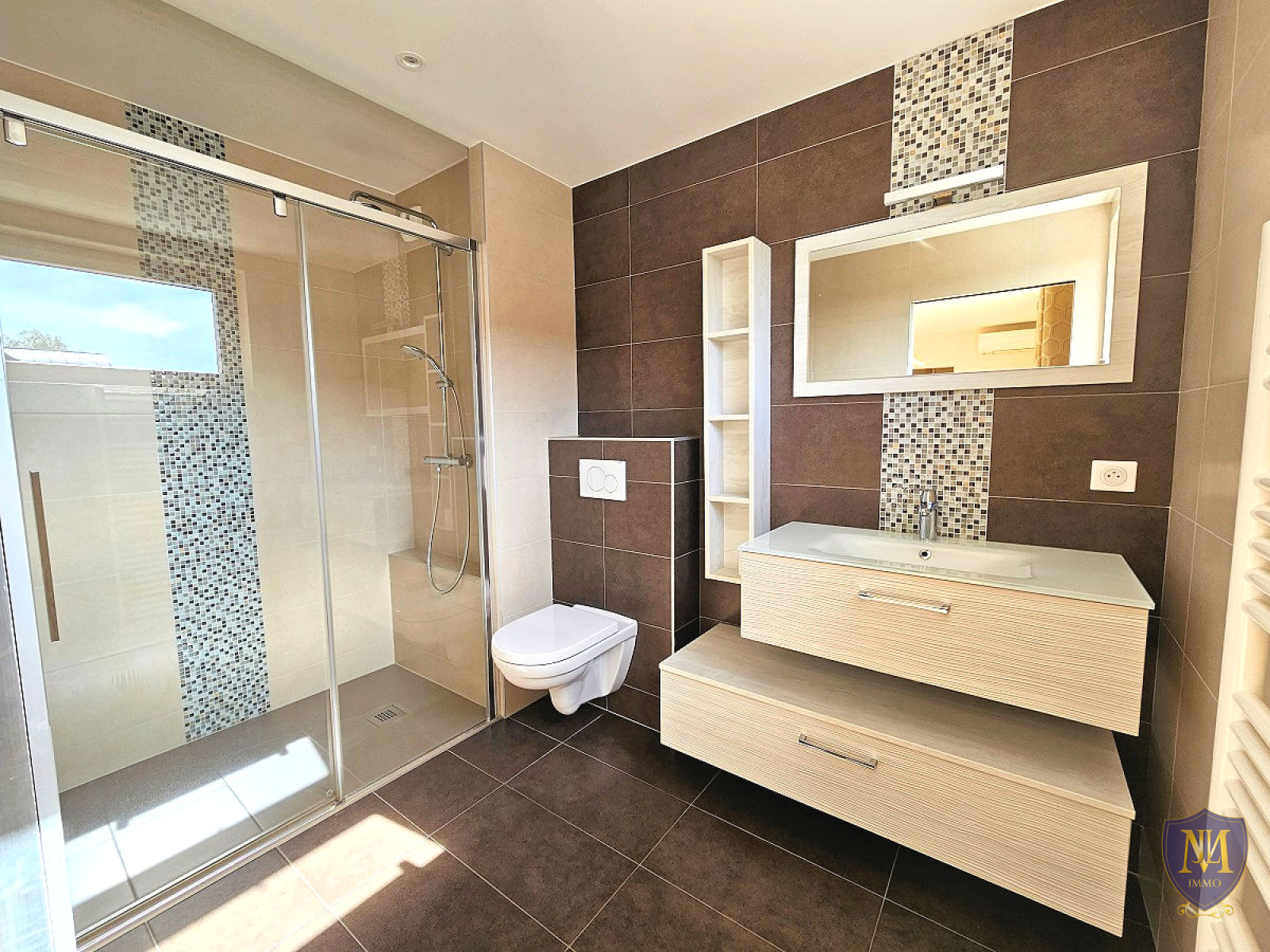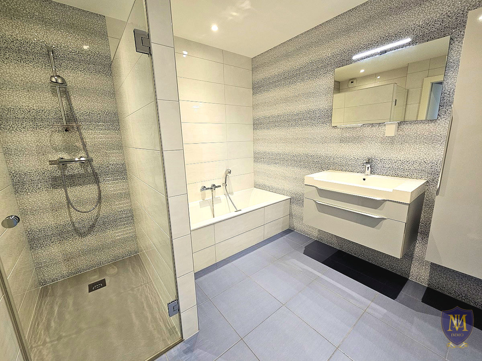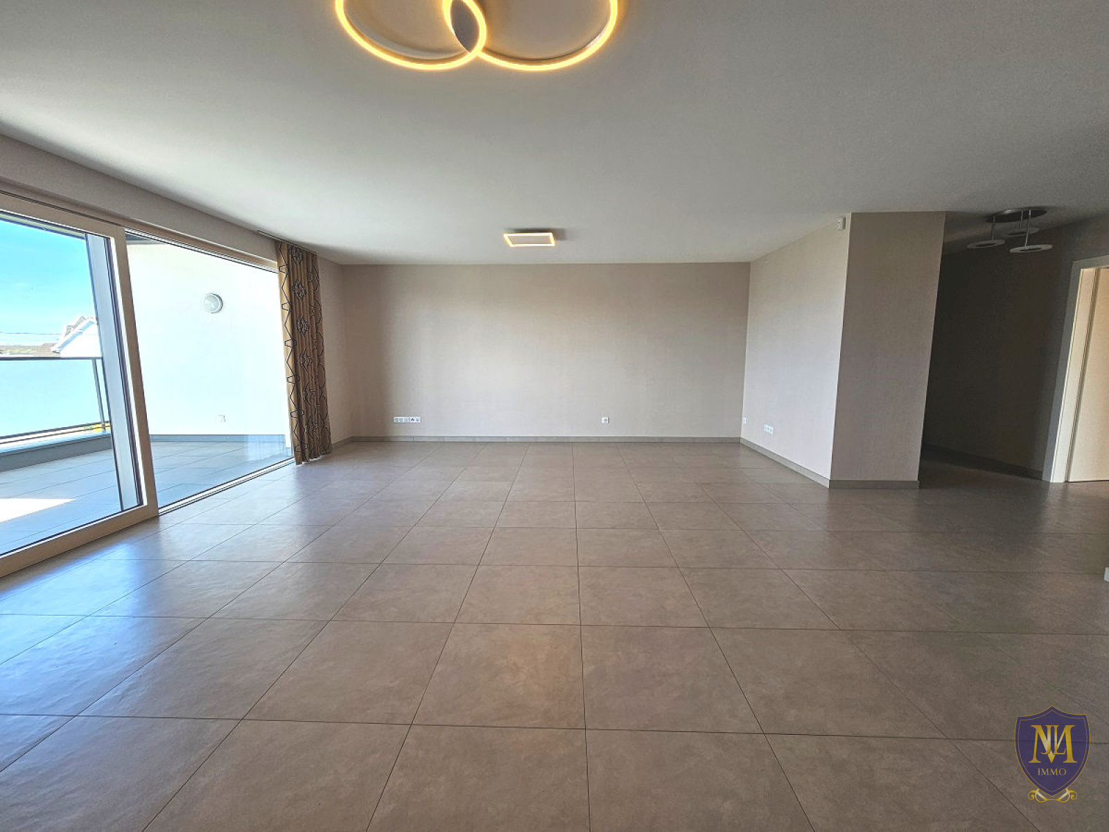 Village-Neuf (68128)Situé au calme, dans une résidence de standing composée de 11 logements année 2017, au 2ème et dernier étage, très bel appartement 5 pièces aux prestations de qualité de 128,61 m² habitables, comprenant : une entrée, un lumineux salon séjour donnant sur une terrasse de 25,90 m² avec pergola bioclimatique, une cuisine équipée, un cellier, 3 chambres dont une avec armoire murale et une parentale donnant sur une 2ème terrasse de 25 m² avec dressing + salle d'eau équipée, une salle de bains équipée avec baignoire et douche, au sous-sol un double garage de 53 m² et à l'extérieur une place de parking. Disponible : 1er février 2024.
