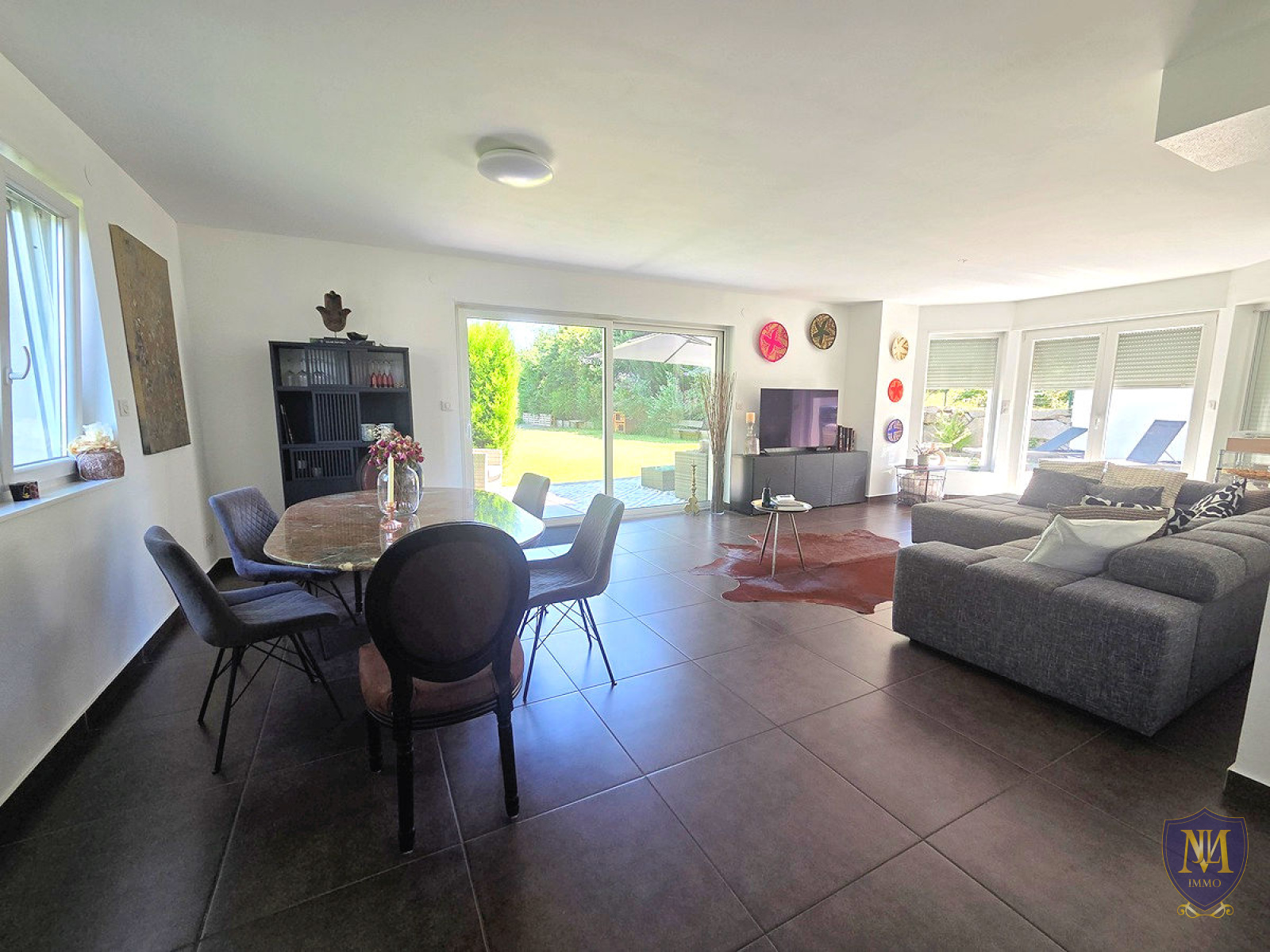 Buschwiller (68220)Dans un environnement calme, belle maison année 2009 d'environ 136 m² comprenant : une entrée, une cuisine équipée ouverte sur un salon séjour donnant sur une terrasse et un jardin, un cellier, 4 chambres, une salle de bains équipée, une mezzanine, un sous-sol avec une buanderie, 2 caves, un garage avec accès à la maison et 2 places de parking. Le tout sur un terrain de 11 ares. Disponible fin août 2025.