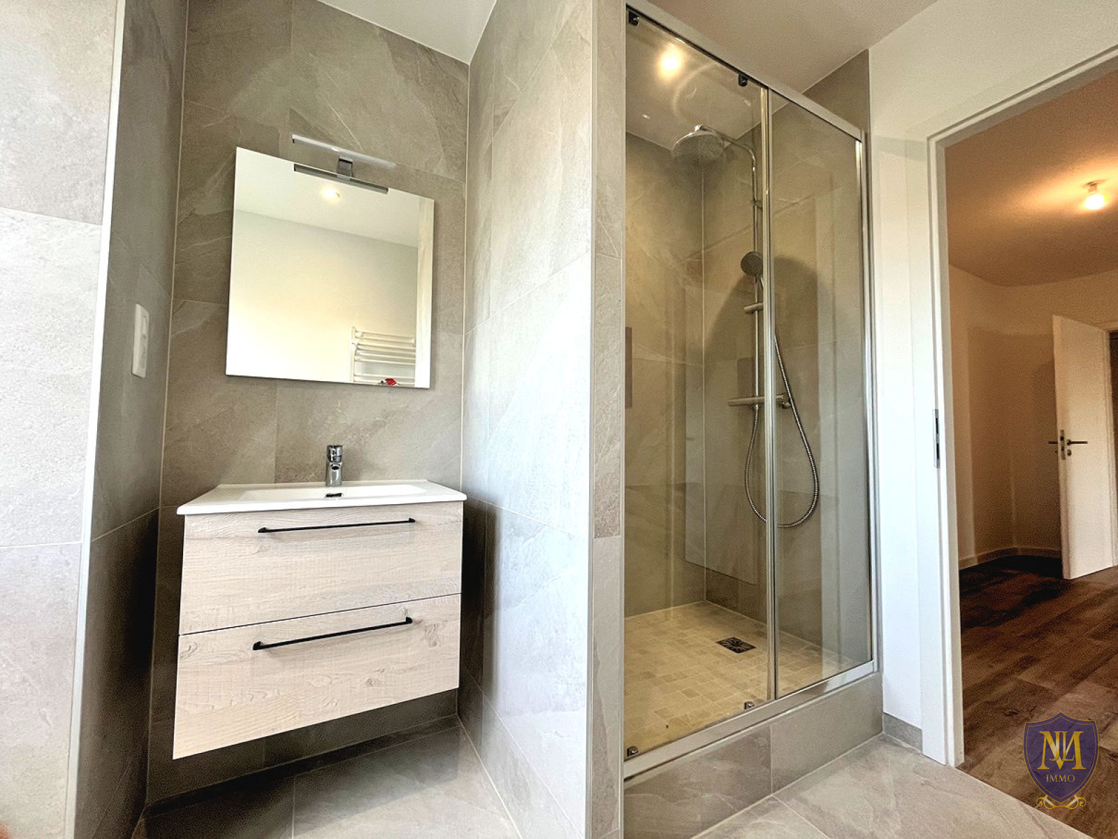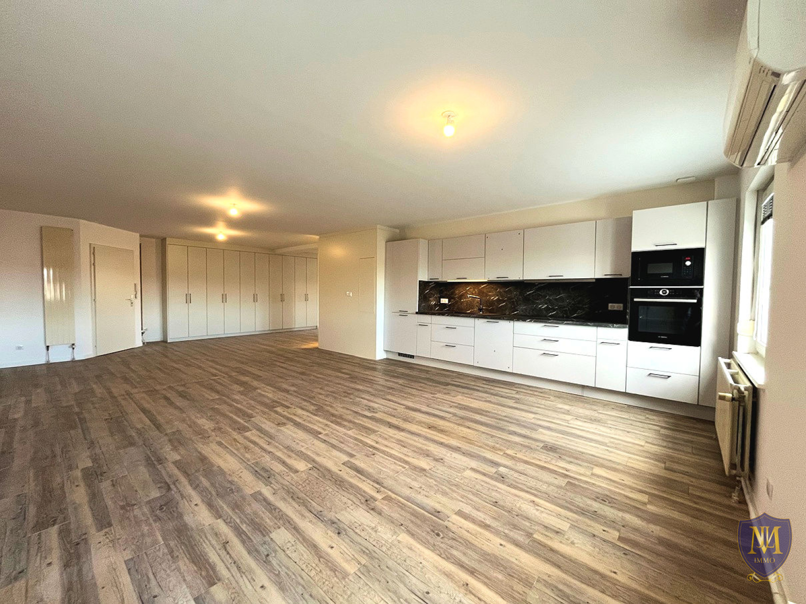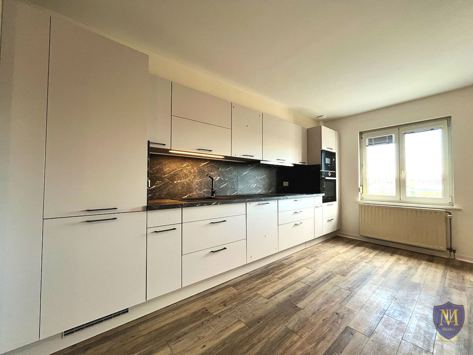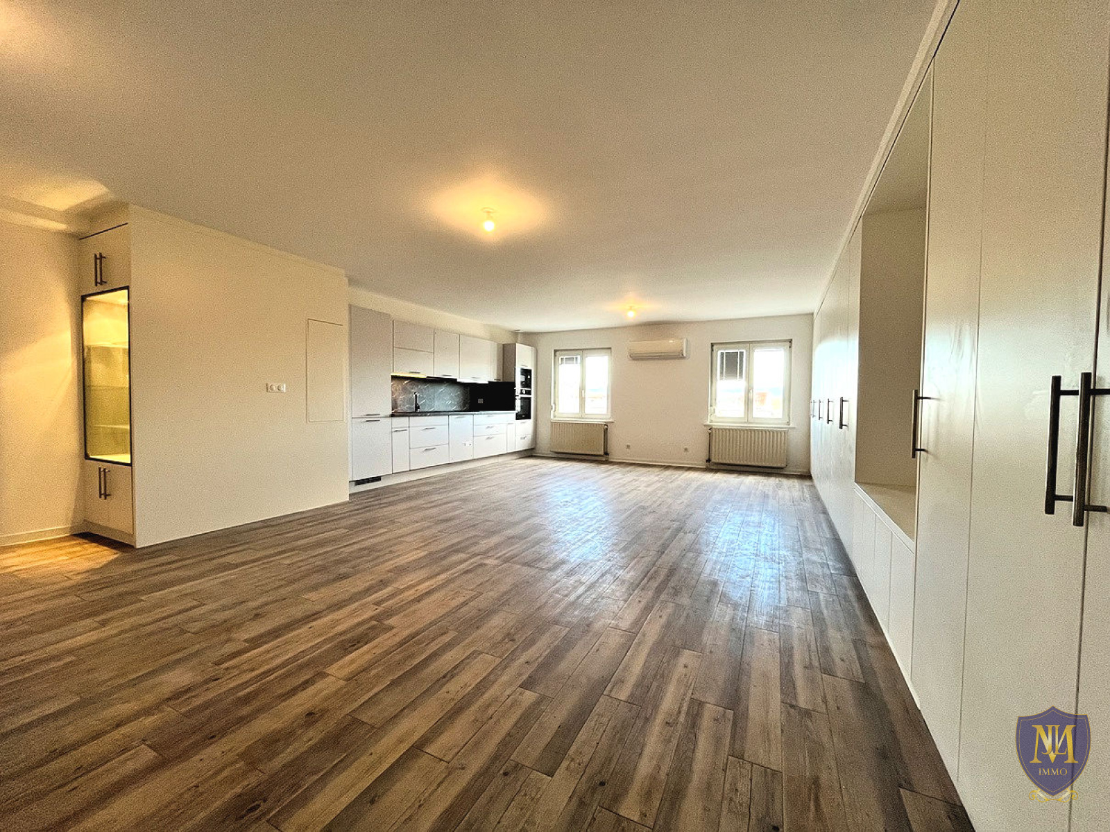 Saint-Louis (68300)Au coeur de Saint-Louis, proche de la frontière, dans un immeuble année 1990, grand appartement 5 pièces entièrement rénové au 2ème étage avec ascenseur de 142,89 m² habitables, comprenant : une entrée, une cuisine équipée ouverte sur un spacieux salon séjour , 3 chambres dont une avec placards muraux, une petite pièce laverie, 2 salles d'eau équipées et une place de parking privé au sous-sol. Possibilité de louer un garage. Disponible de suite.