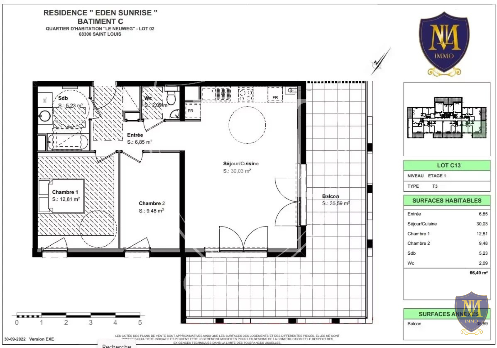 Saint-Louis (68300)Dans une résidence de standing au très beau désign, pour acquisition ou investissement, au premier étage, un appartement neuf de 66,49 m² habitables comprenant deux chambres, une belle pièce de vie ouverte sur cuisine de 30,60 m², une salle de bain équipée, un wc suspendu, une grande terrasse de 35,59 m². Un garage peut compléter cette offre. - ELIGIBLE DISPOSITIF PINEL ZONE B1 - GARANTIE DE PARFAIT ACHEVEMENT DES TRAVAUX - FRAIS DE NOTAIRES REDUITS - REPOND A LA REGLEMENTATION RT 2012 - PANNEAUX PHOTOVOLTAÏQUES - ESPACE VERDOYANT Contactez votre conseillère Muriel MEYER au 06 03 01 70 27 ou par mail : muriel.meyer@moebel-immo.com