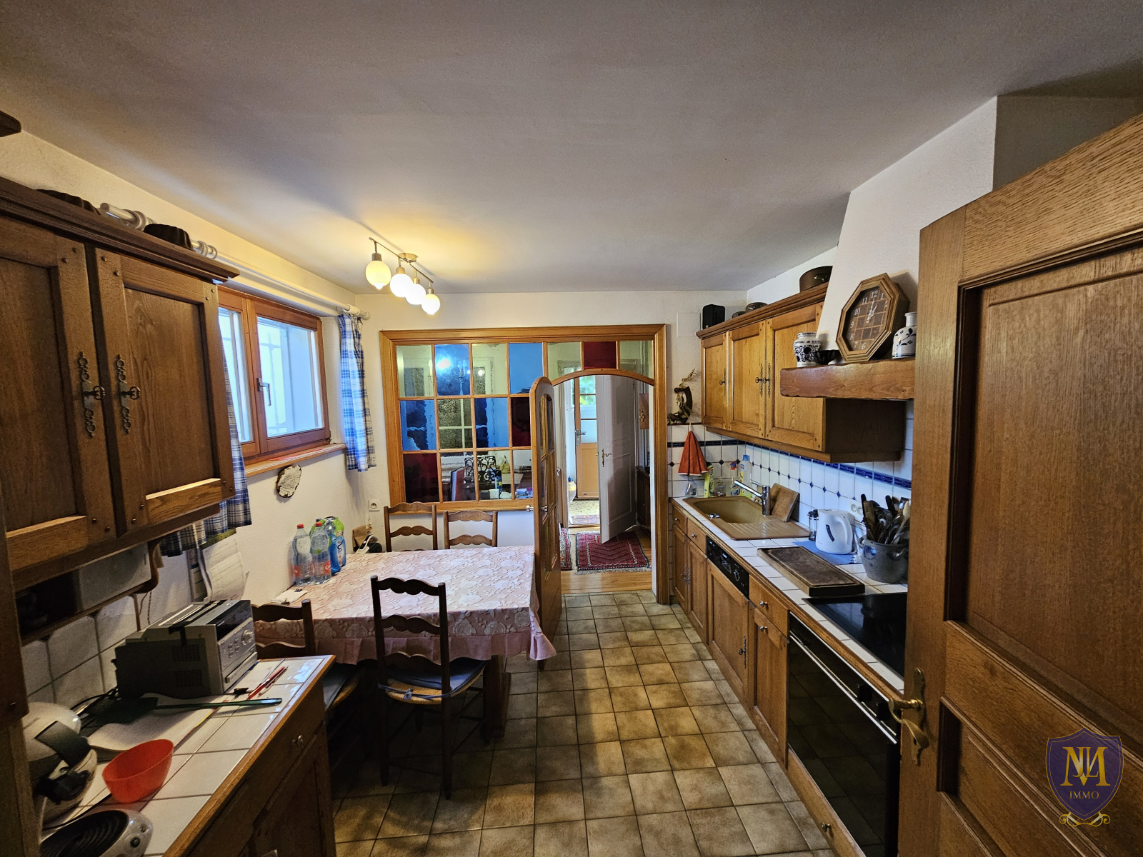 Hégenheim (68220)Proche de la frontière Suisse dans un environnement calme, maison année 1930 d'environ 110 m² habitables à rafraîchir, comprenant : une entrée, un salon séjour avec cheminée, une cuisine équipée, 3 chambres dont une parentale avec terrasse, une salle d'eau équipée, un sous-sol complet avec une buanderie, une pièce multifonctions, une cave à vins et un local technique. À l'extérieur, un abri de jardin avec coin barbecue, un garage, deux remises, un atelier avec espace stockage, une cour avec places de parking et un magnifique jardin arboré d'arbres fruitiers avec un petit bassin. Le tout sur 14,30 ares de terrain.