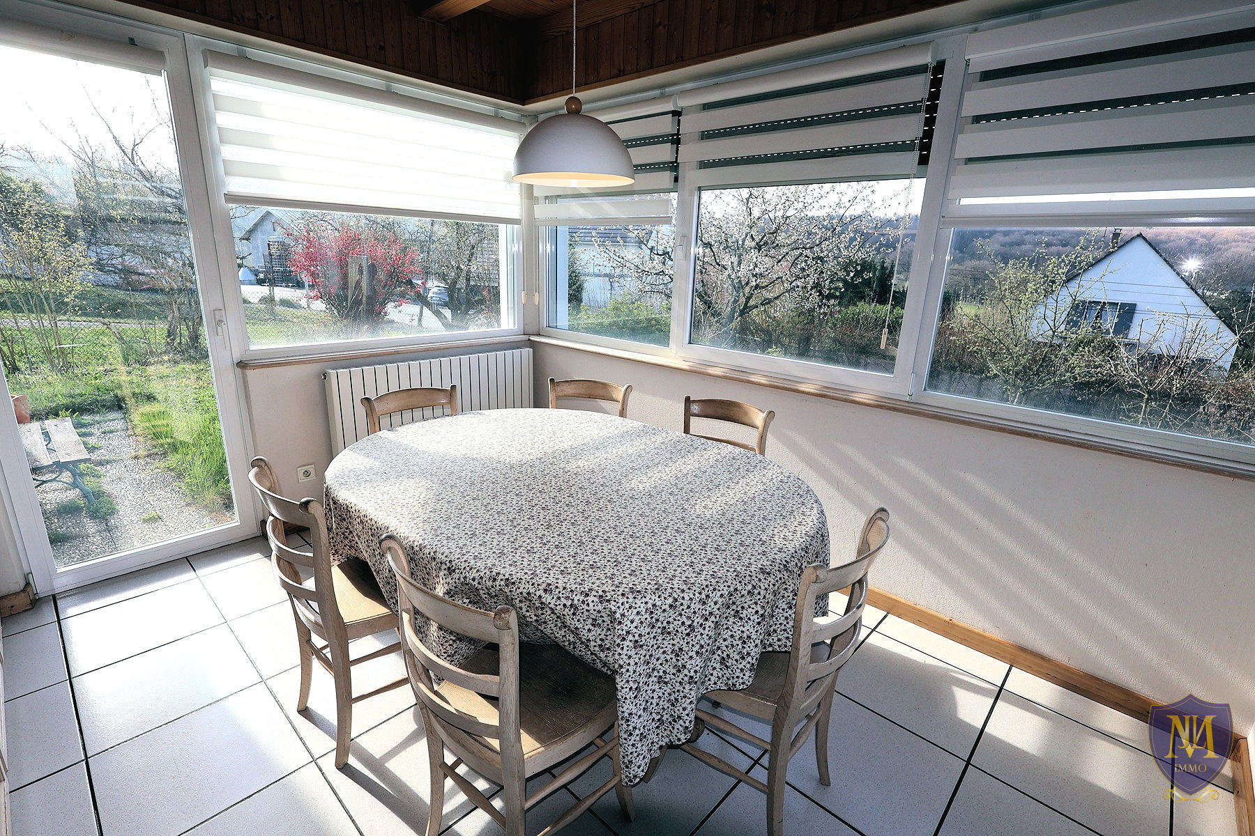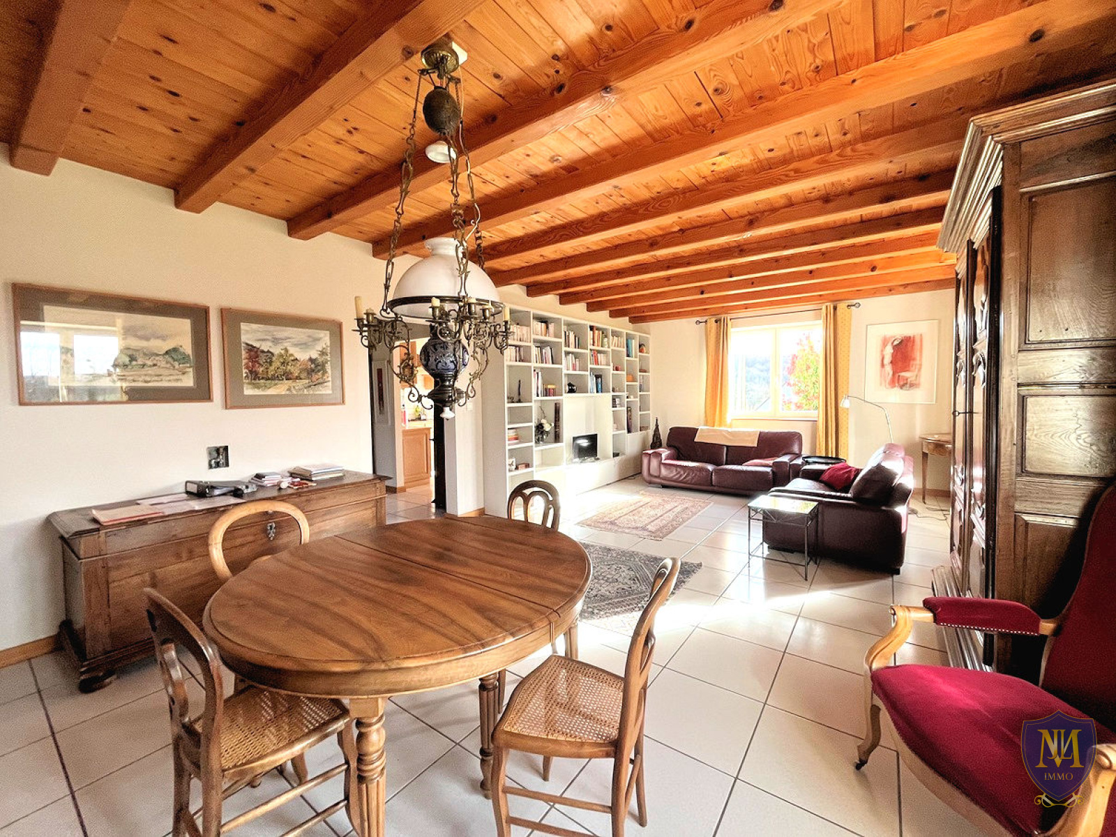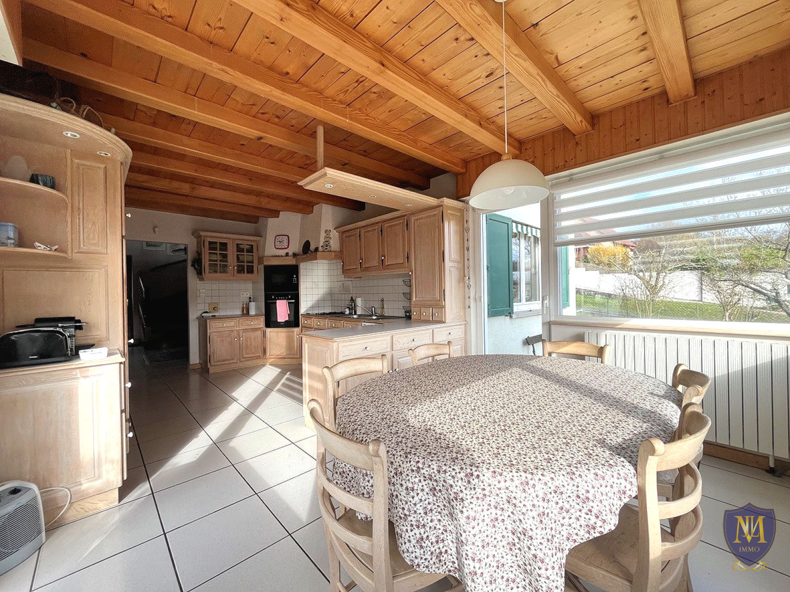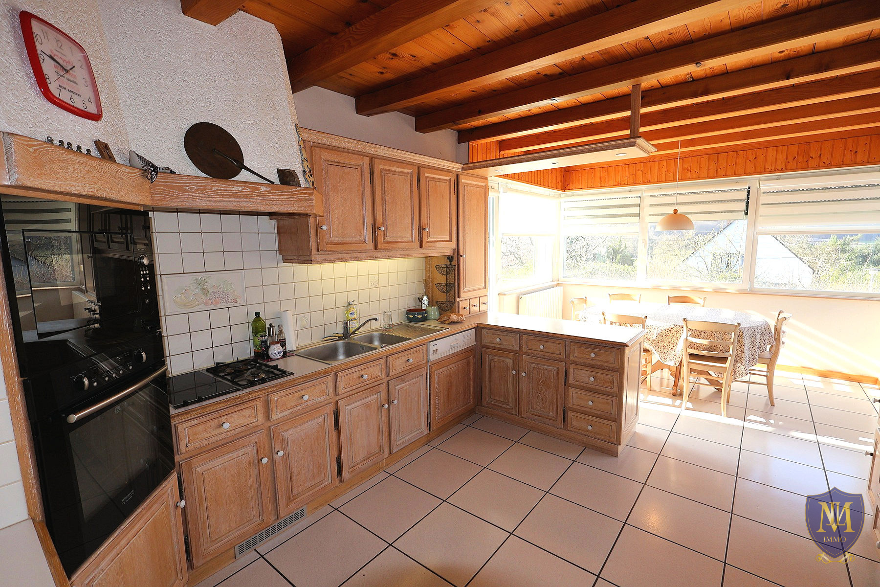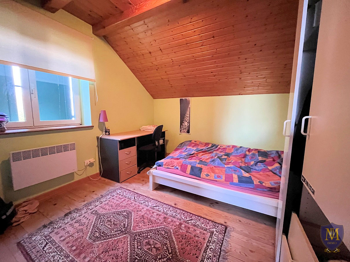 Hagenthal-le-Bas (68220)Situation dominante sur les hauteurs, grande et agréable maison année 1991 de 169 m², comprenant : une entrée, une cuisine équipée donnant sur une terrasse/véranda, un spacieux salon séjour, une chambre, une salle de bains équipée avec baignoire + douche et un wc séparé. À l'étage 4 chambres, une grande pièce avec la possibilité d'y créer 1 à 2 chambres ainsi qu'un grand grenier sous les combles. Le sous-sol est complet aménagé d'une pièce avec une salle d'eau équipée/wc, une pièce multifonctions, une cave, une cave à vins, un local technique et un garage. À l'extérieur 2 garages, un abri de jardin et 5 places de parking viennent compléter ce bien. Le tout sur un terrain de 12,42 ares.