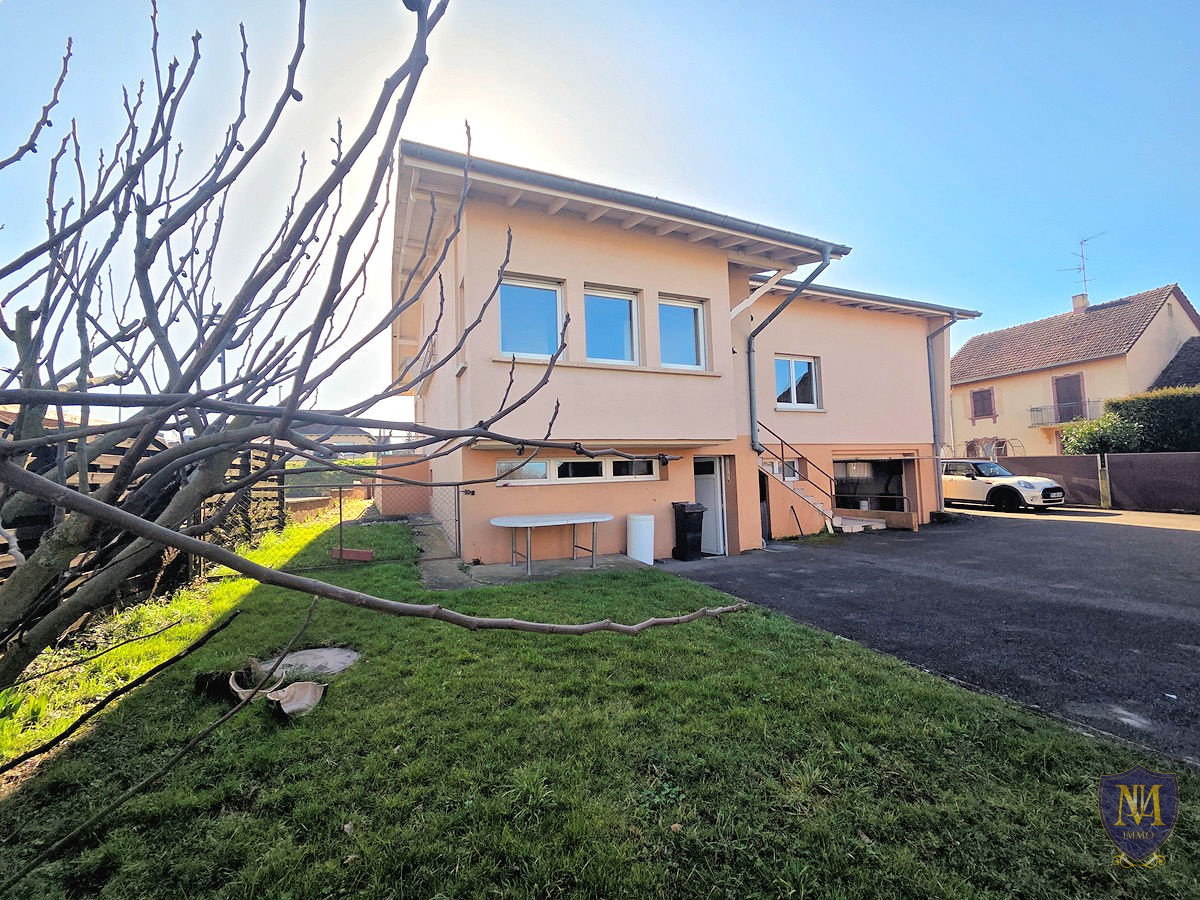 Michelbach-le-Bas (68730)Bien situé proche de Blotzheim, maison plain-pied à fort potentiel année 1967 à rénover de 120 m², comprenant : une entrée, une cuisine équipée avec coin repas avec un sas accédant à l'arrière, un spacieux et lumineux salon séjour donnant sur une terrasse, 3 chambres dont une avec armoire murale, une salle de bains équipée avec baignoire + douche, un wc séparé et sous les combles une pièce aménagée avec placards ainsi qu'un espace grenier. Le sous-sol est complet disposant d'un garage, un local chaufferie et une buanderie. À l'extérieur un garage, une dépendance à exploiter et 5 places de parking viennent compléter ce bien. Le tout sur un terrain de 9,02 ares avec possibilité d'acquérir une parcelle supplémentaire de 5,73 ares.