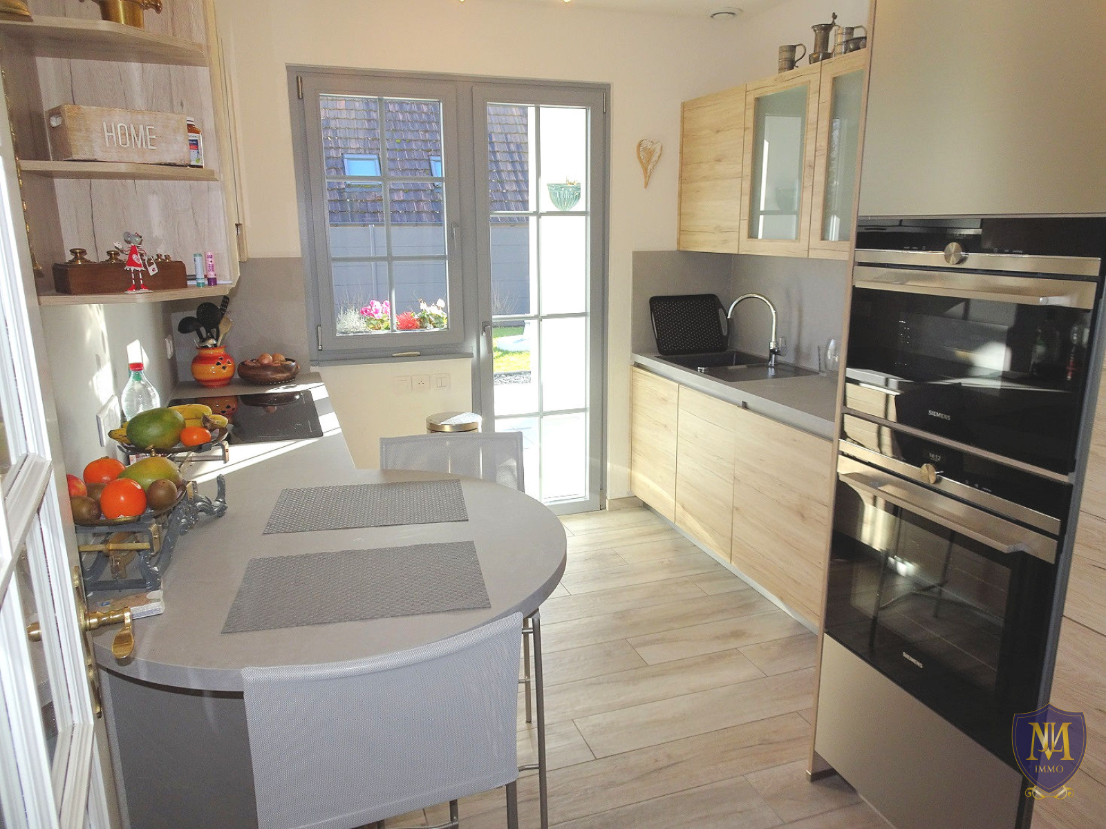 Michelbach-le-Bas (68730)Belle maison très soignée des années 1990 entièrement rénovée en 2020 de 140 m² au sol, environ 115 m² habitables comprenant un salon séjour lumineux et une cuisine équipée donnant sur une terrasse, un jardin ainsi qu'une piscine, 3 chambres dont 2 à l'étage avec balcon et possibilité de faire une 4ème chambre, 2 salles d'eau équipées, une grande mezzanine, un sous-sol complet avec cave, buanderie, local chaufferie, local technique piscine et 2 garages. Le tout sur un terrain de 7 ares.