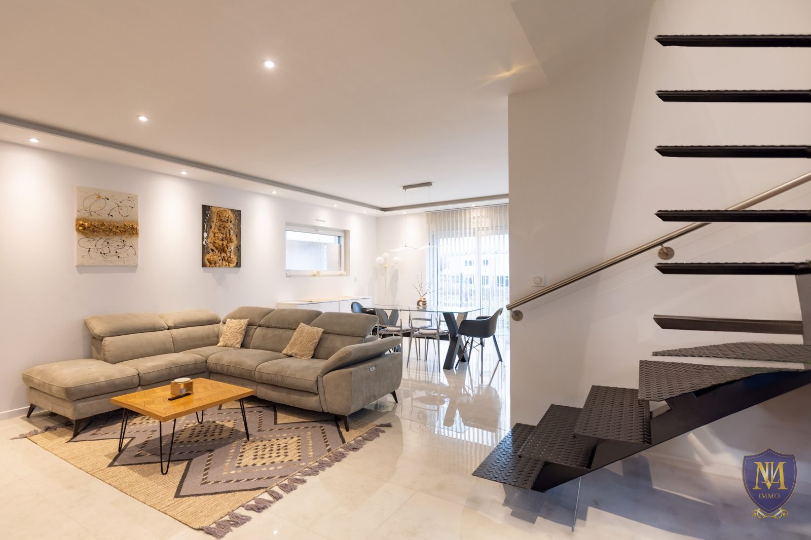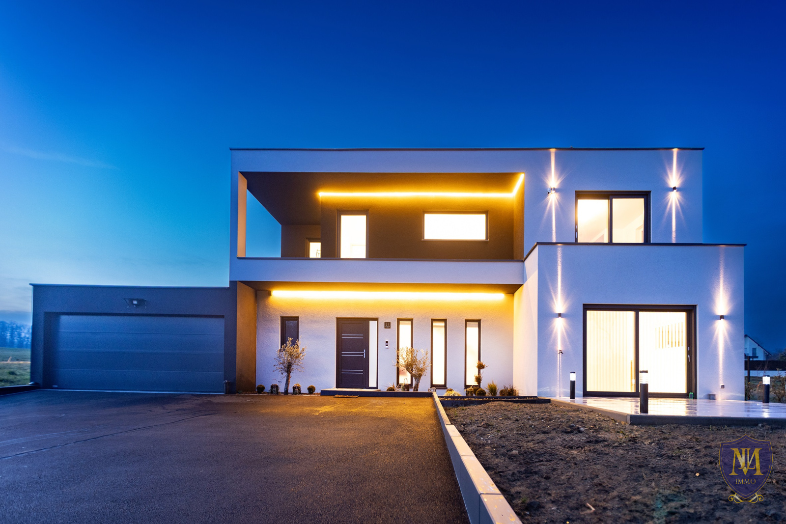Ranspach-le-Bas (68730)Dans un environnement calme au centre du village et sans vis-à-vis, très belle maison contemporaine année 2022 de 134 m² habitables, comprenant : une entrée avec armoire murale, une cuisine équipée ouverte sur un grand et lumineux salon séjour de plus de 50 m² donnant sur une terrasse, 4 chambres dont une suite parentale de 25 m² avec dressing + salle d'eau équipée ainsi qu'un balcon, une terrasse accessible d'une chambre et du dégagement, une salle d'eau équipée, un sous-sol avec une grande cave et un local technique. À l'extérieur un double garage avec accès directement à la maison et 4 places de parking viennent compléter ce bien. Le tout sur un terrain de 5,72 ares dont 1,20 ares correspondant au chemin d'accès.