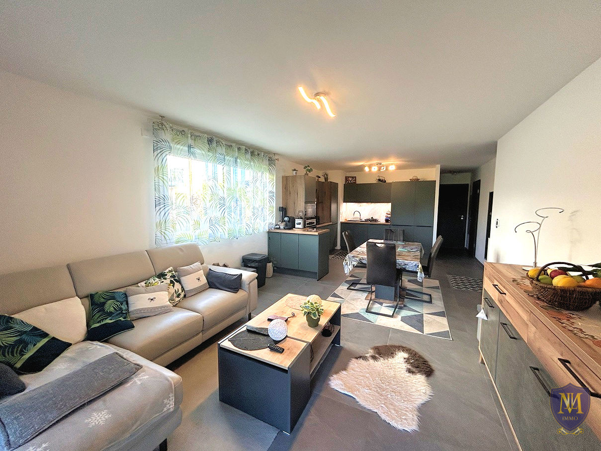 Blotzheim (68730)Belle situation très au calme, dans une copropriété année 2023 charmant et agréable 3 pièces en rez-de-jardin de 71,10 m² habitables, comprenant : une entrée avec armoire murale, une cuisine équipée ouverte sur un salon séjour donnant sur une terrasse avec un jardin de 85 m², 2 chambres dont une donnant sur un second jardin de 50 m², une salle de bains équipée, un wc séparé et au sous-sol un garage et 3 petites caves. À l'extérieur une place de parking privative vient compléter ce bien.