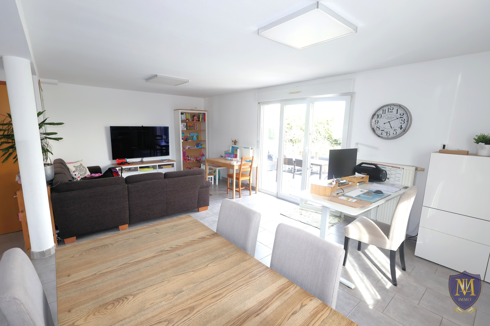 Blotzheim (68730)Proche du centre et des commodités, agréable maison accolée d'un coté année 1999 de 89,42 m² habitables, comprenant : une entrée, une cuisine équipée ouverte sur un salon séjour donnant sur une terrasse de 26 m² + accès au jardin, un wc séparé, 3 chambres, une salle de bains équipée / wc et au sous-sol une cave ainsi qu'un garage. À l'extérieur une piscine hors-sol et une place de parking viennent compléter ce bien. Le tout sur un terrain de 4,04 ares.