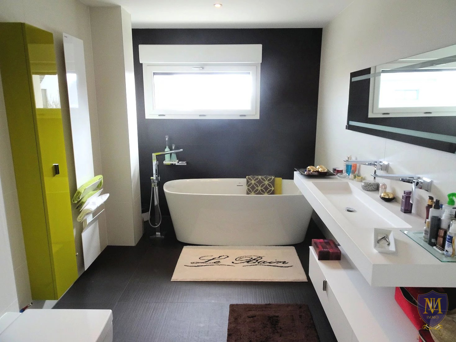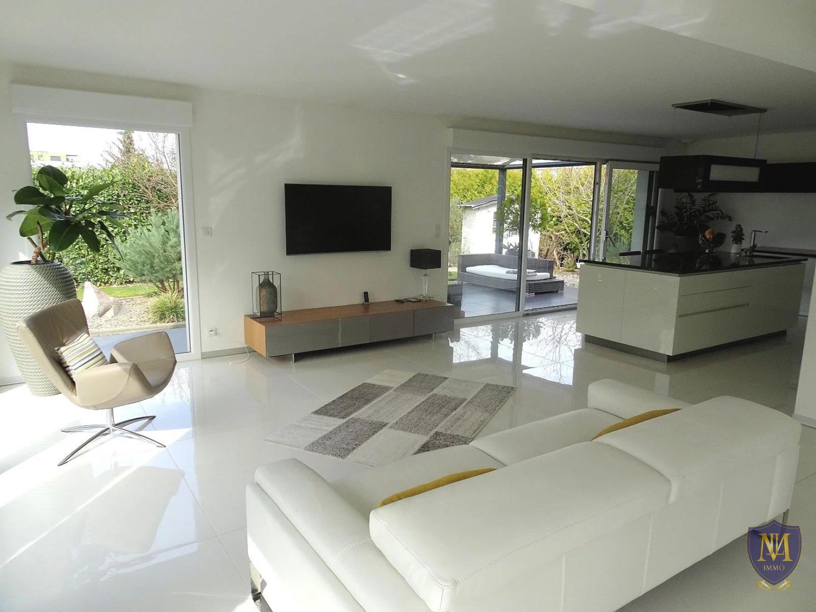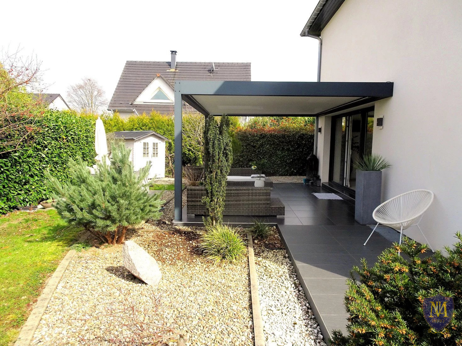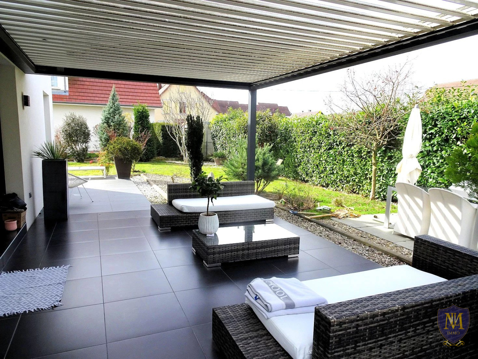 Proche de toutes commodités, belle maison de standing aux prestations de qualité année 2013 de 125 m² habitables + 35 m² de sous-sol aménagé, comprenant : une entrée, une cuisine équipée ouverte sur un lumineux salon séjour donnant sur une terrasse couverte, une mezzanine, 2 chambres dont une parentale avec dressing et salle de bains équipée. Possibilité de créer une 3ème chambre ! Un sous-sol complet composé d'une chambre de 35 m², une buanderie avec coin douche ainsi qu'une cave à vins. À l'extérieur un grand garage de 32 m² et 2 places de parking viennent compléter ce bien. Le tout sur un terrain de 6,50 ares. - PERGOLAS BIOCLIMATIQUE - BELLE SITUATION - TRÈS BON ÉTAT Pour plus de renseignements ou si vous souhaitez visiter, contactez votre conseiller Jean-Louis MOEBEL au 06.26.02.56.90 ou par mail : jean-louis.moebel@moebel-immo.com
