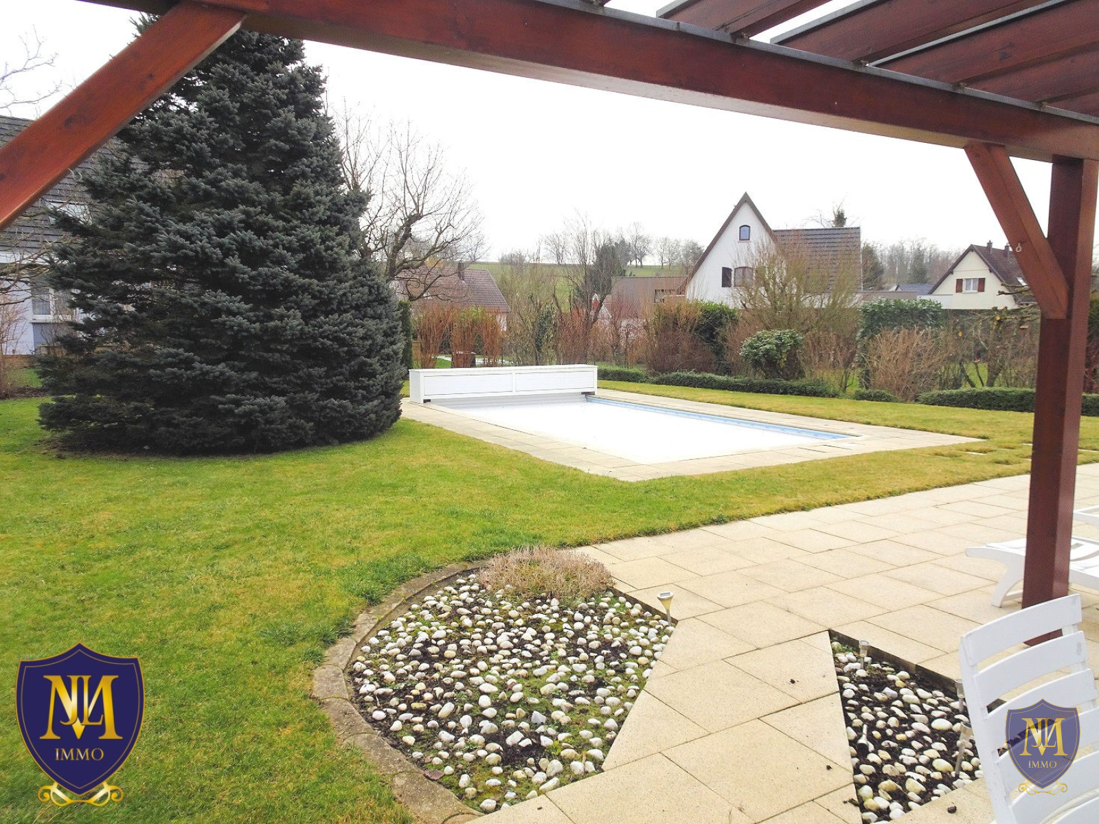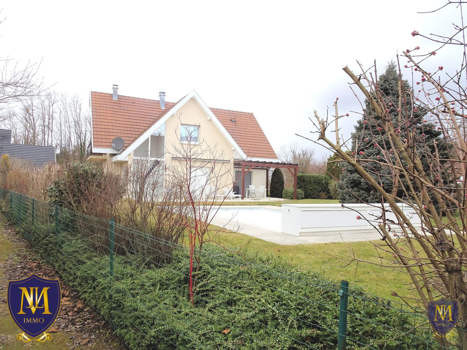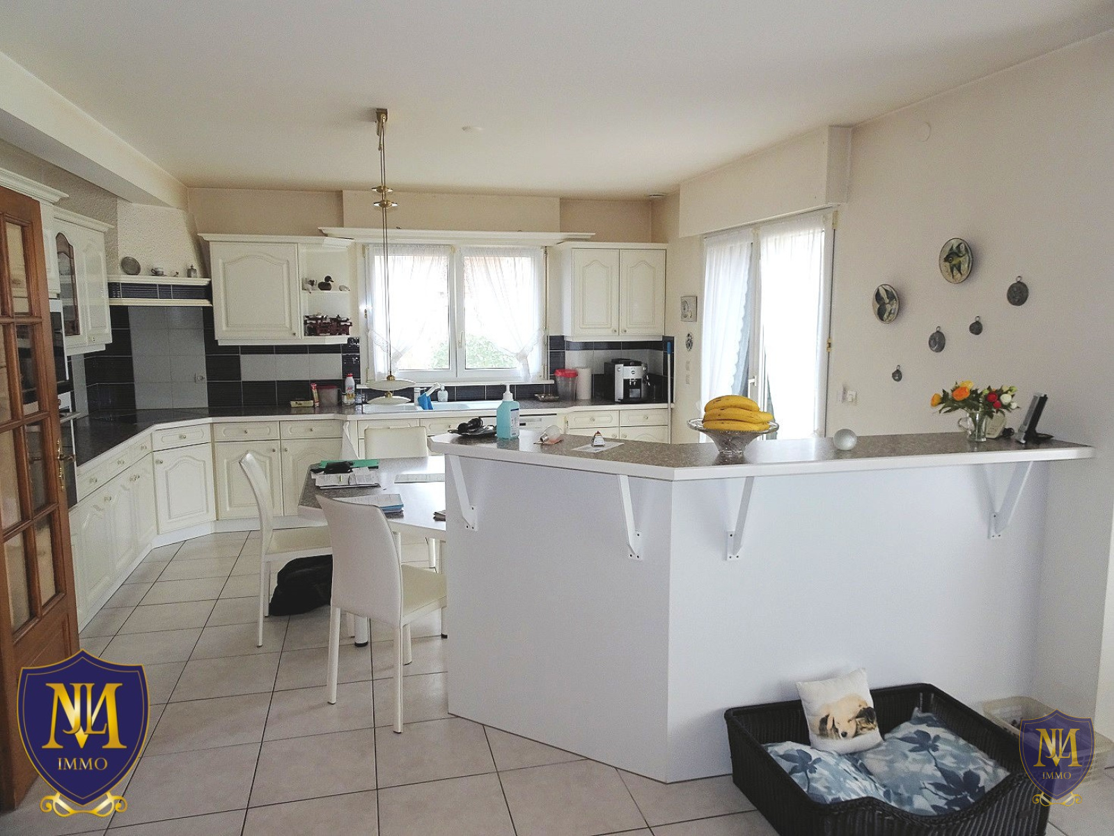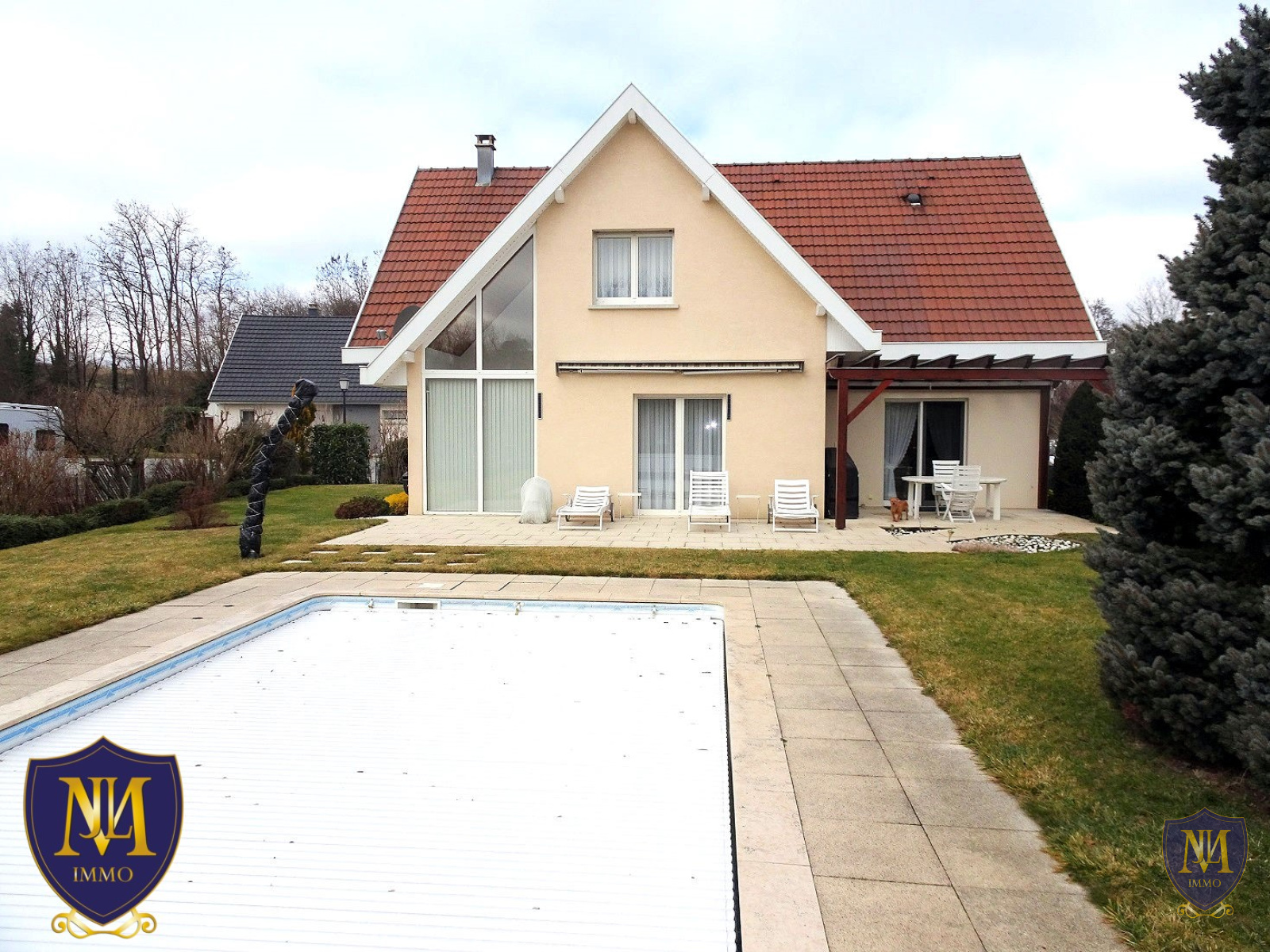 Blotzheim (68730)Situation exceptionnelle au calme de Blotzheim ! Maison très soignée des années 1992 d'environ 170 m² au sol comprenant une entrée, une cuisine équipée ouverte sur un lumineux salon séjour avec cheminée et une salle à manger, une véranda, une grande terrasse, une mezzanine, 2 chambres avec accès balcon et une 3ème chambre avec un grand dressing, une salle de bains équipée avec baignoire et douche, un sous-sol complet avec une cave, une buanderie-chaufferie et un garage 3 voitures. A l'extérieur un jardin, une piscine et 2 places de parking. Le tout sur un terrain de 12,01 ares.