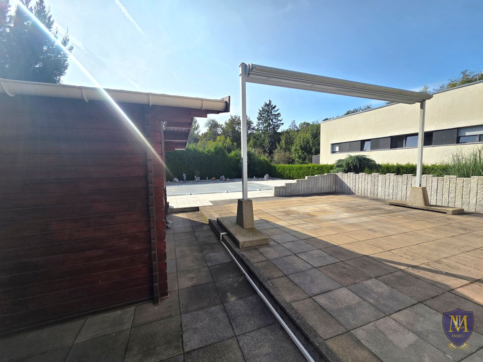 Blotzheim (68730)Très belle situation au calme dans un écrin de verdure, maison Schwörer basse consommation ! année 2006 de 125 m² habitables, comprenant : une entrée, un grand salon séjour donnant sur une terrasse, une cuisine équipée, un cellier, 3 chambres, un bureau, une salle de bains équipée baignoire + douche et au sous-sol une cave, un grand local multifonctions ainsi qu'un local technique. À l'extérieur une piscine à rénover (liner et filtration), un carport et 4 places de parking complètent ce bien. Le tout sur un terrain de 7,91 ares.