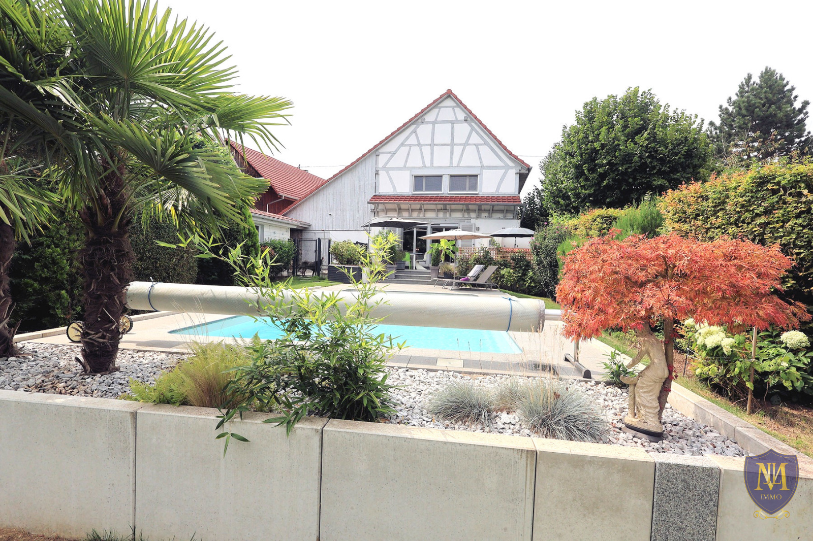 Magstatt-le-Haut (68510)Dans un environnement calme, maison alsacienne, année 1850 rénovée en 2014 avec une partie extension style loft mesurant en tout 232 m², comprenant : une entrée avec armoire murale, une cuisine équipée semi-ouverte avec verrière, un salon séjour donnant sur une terrasse et une piscine chauffée avec sa plage aménagée, une suite parentale avec dressing + salle d'eau équipée, une buanderie/cellier, un wc séparé, une grande mezzanine de 40 m², 4 chambres dont une avec une salle d'eau équipée, une salle de bains équipée, un wc séparé et au sous-sol une cave ainsi qu'un local chaufferie. À l'extérieur, un cabanon de jardin, un double garage avec borne de recharge électrique et 3 places de parking viennent compléter ce bien. Le tout sur un terrain de 9,16 ares de terrain.