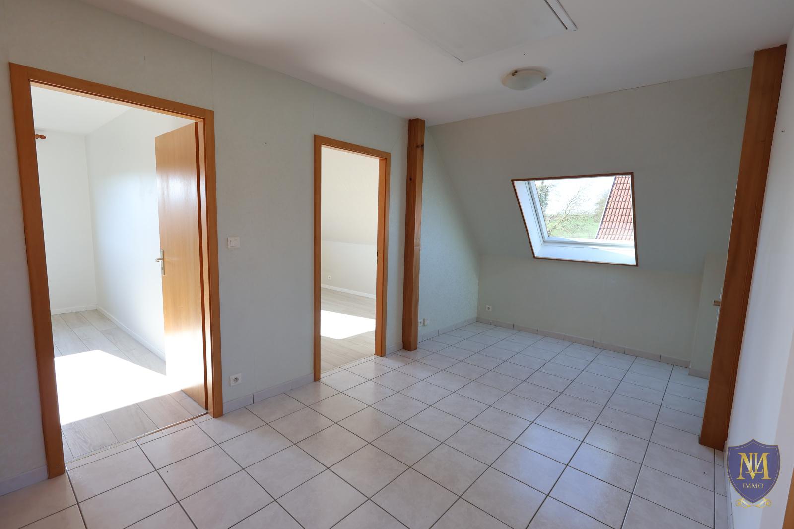 Knoeringue (68220)Dans un cadre de verdure, très belle maison année 1998 de 140 m² au sol et 125 m² habitables, comprenant au rez-de-chaussée : une entrée, une cuisine équipée séparée, un spacieux salon séjour donnant sur une terrasse et un jardin, une chambre/bureau, une salle d'eau, un wc ; à l'étage, une mezzanine, 3 chambres, une salle de bains équipée avec wc, un sous-sol complet avec cave, buanderie, garage trois voitures et à l'extérieur places de parking. Le tout sur un terrain de 7,61 ares. - ADOUCISSEUR D'EAU - TRÈS BEAUX VOLUMES - FIBRE.Pour plus de renseignements ou pour une visite, contactez votre conseillère Muriel MEYER au 06 03 01 70 27 ou par mail : muriel.meyer@moebel-immo.com