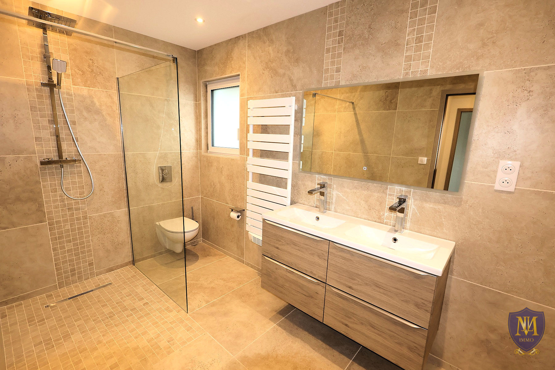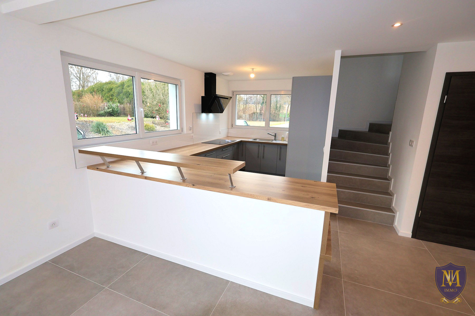 Heiwiller (68130)Dans un environnement calme, belle maison contemporaine année 2022 sur vide sanitaire d'environ 105 m², comprenant : une entrée, une cuisine équipée ouverte sur un salon séjour donnant sur une terrasse, un local technique, un wc séparé, 3 chambres dont 2 avec dressing et une salle de bains équipée baignoire/douche + wc. À l'extérieur un double garage et 2 places de parking viennent compléter ce bien. Le tout sur un terrain de 3,50 ares.