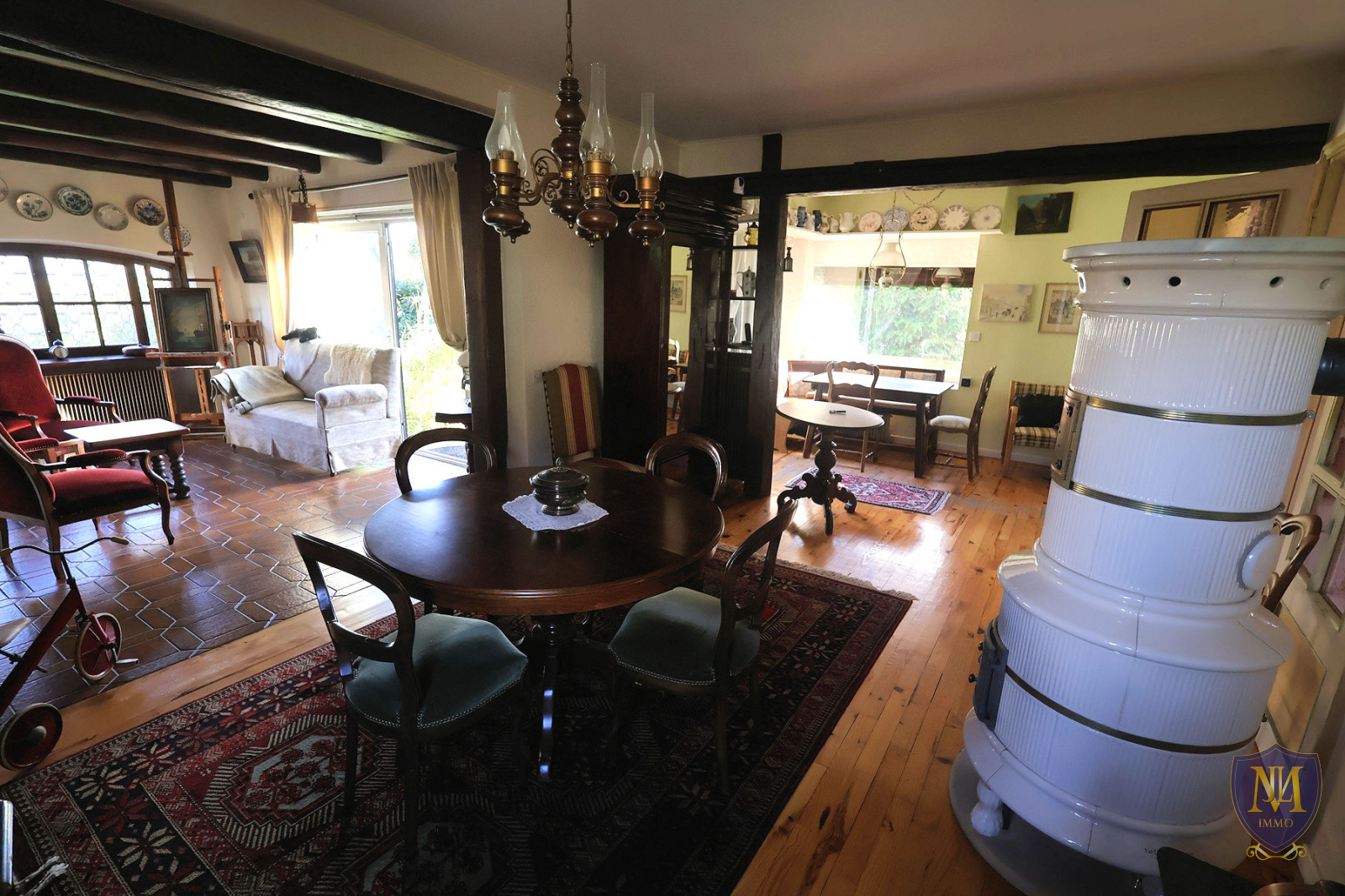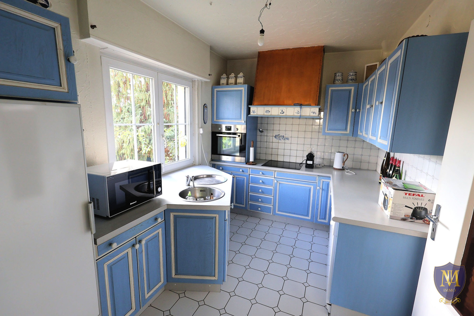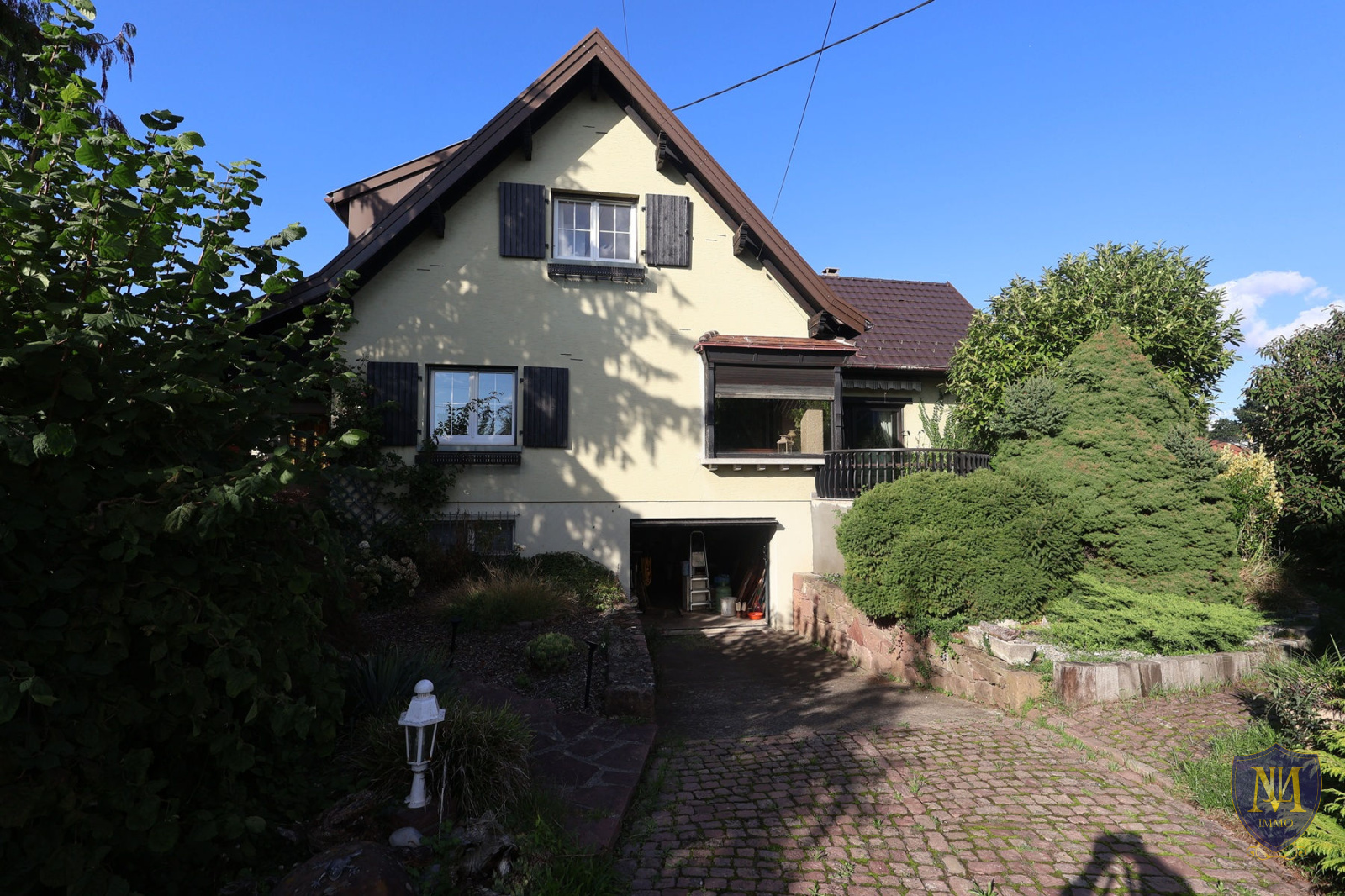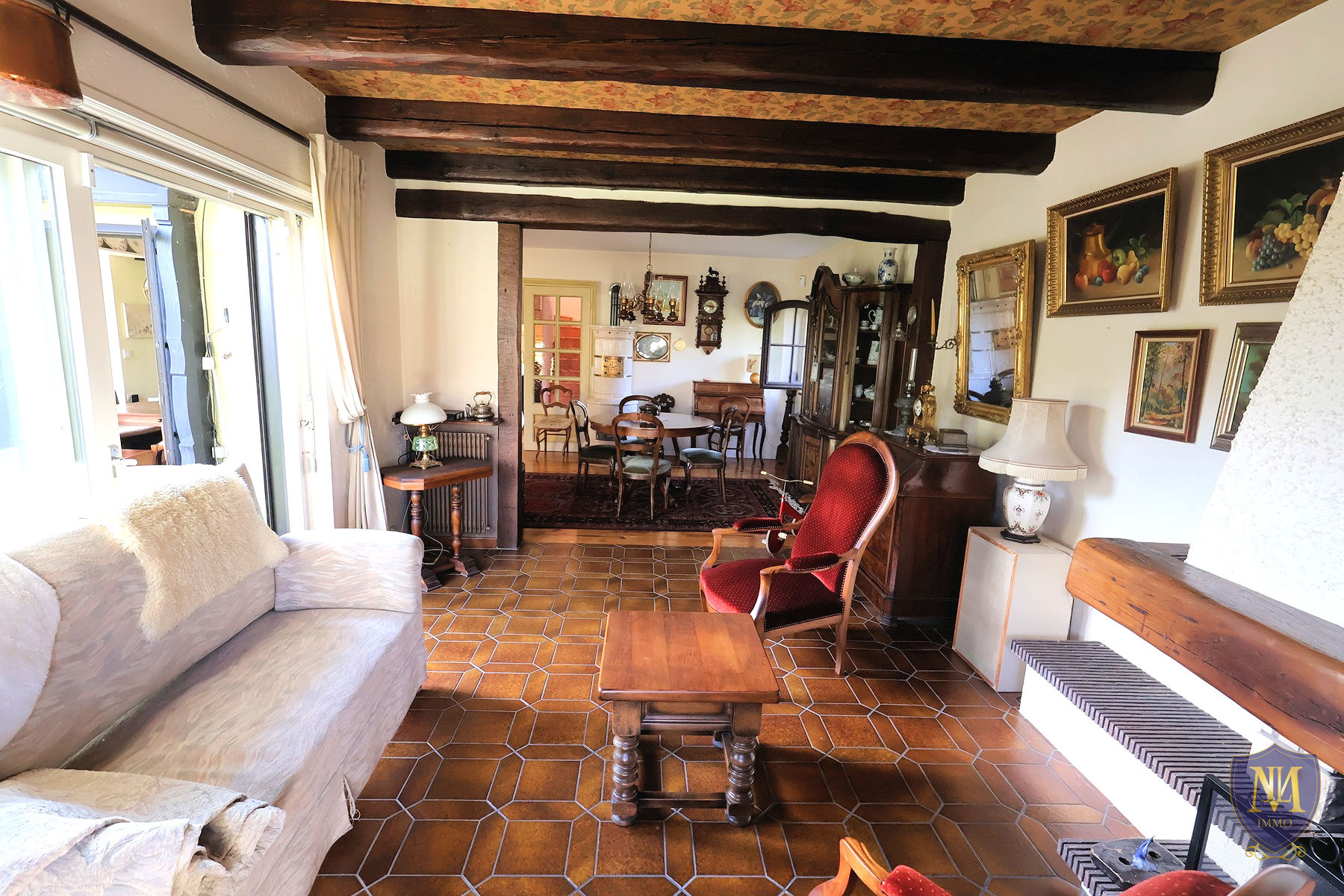 Kingersheim (68260)Au calme dans un ecrin de verdure, maison année 1965 avec extension en 1980 à rafraichir de 109,98 m² habitables, comprenant : une entrée, en enfilade une cuisine équipée ouverte sur un salon séjour avec poêle à bois donnant sur une terrasse, une pièce bureau et un wc séparé. À l'étage 3 chambres dont 2 en enfilade, un balcon, une salle de bains équipée baignoire/douche + wc et le sous-sol dispose d'une pièce multifonctions, une buanderie avec accès à l'extérieur, un local chaufferie, un atelier ainsi qu'un garage. À l'extérieur 2 places de parking viennent compléter ce bien. Le tout sur un terrain de 6,83 ares.
