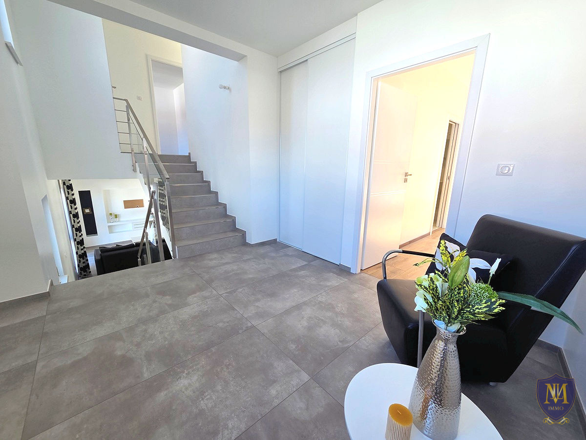 Saint-Louis (68300)Au calme à deux pas de la frontière Suisse, maison accolée année 2022 avec de très belles prestations de 158,05 m² habitables sur vide sanitaire, comprenant :