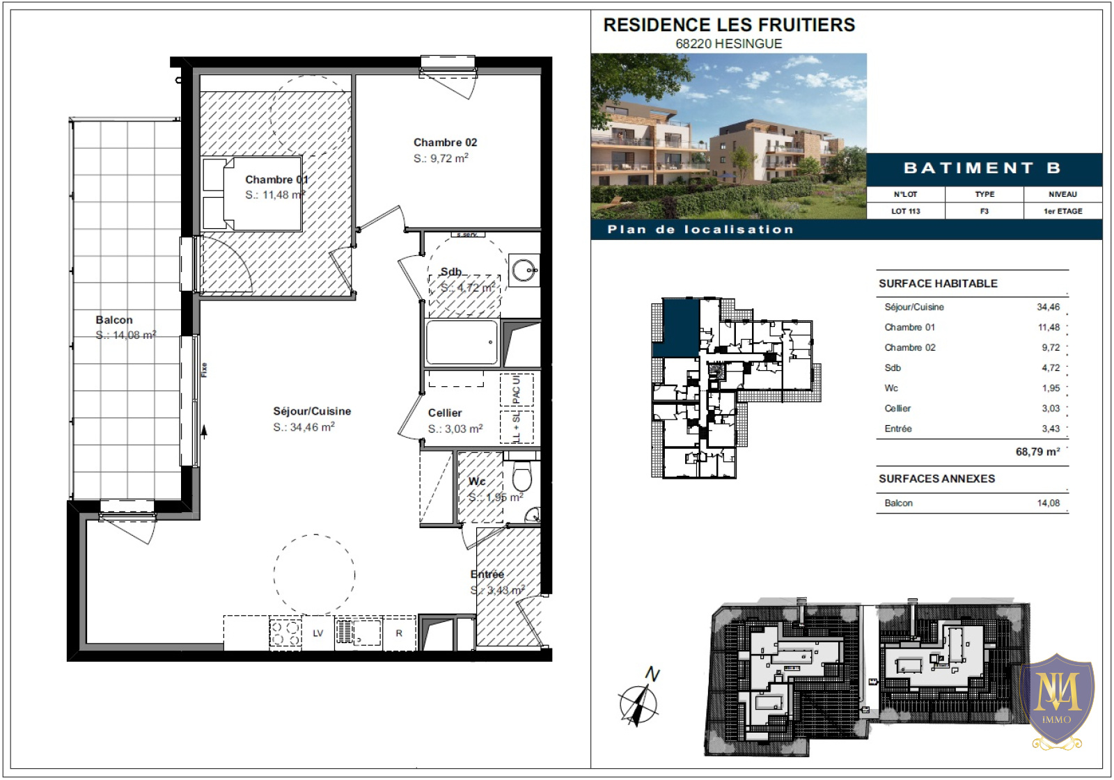 HESINGUE NEUF APPARTEMENT 3 PIÈCES DE 69 M² AVEC TERRASSE