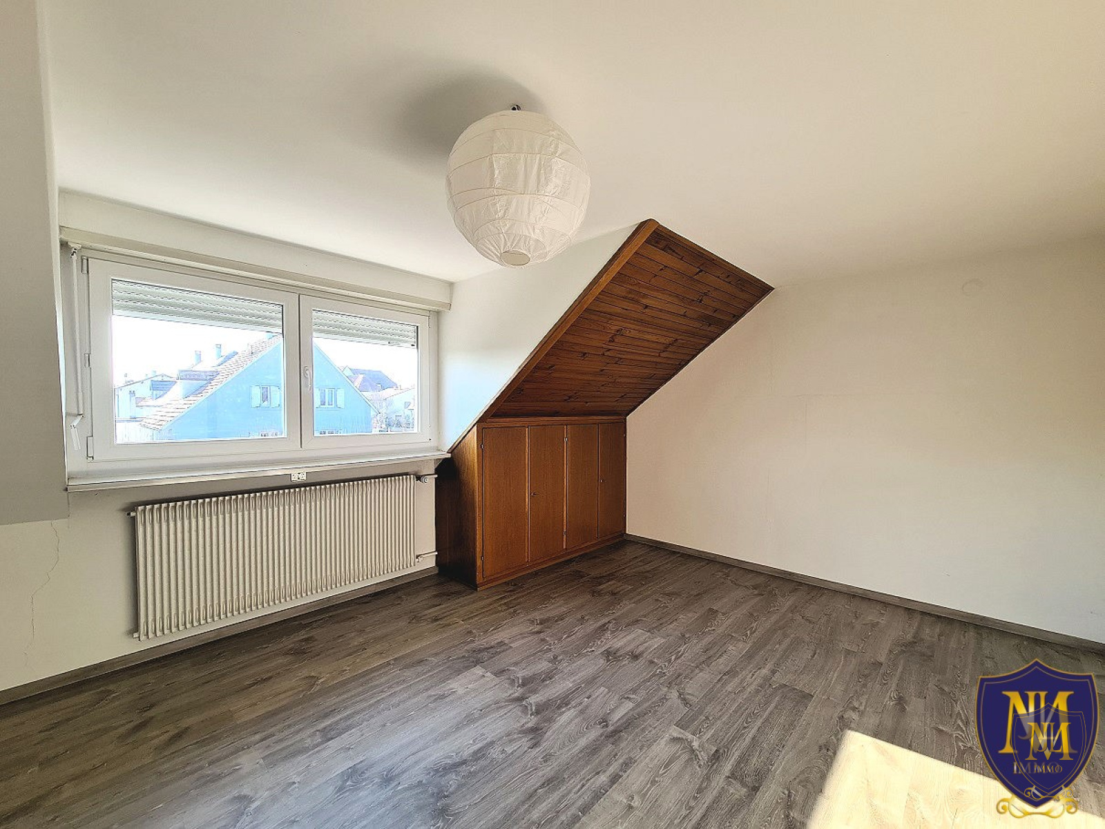Hésingue (68220)Au centre du village, maison à rafraîchir d'environ 166 m² comprenant une entrée, un salon séjour, une cuisine équipée, 4 chambres, un bureau, une salle de bains équipée, un sous-sol avec cave, buanderie, chaufferie et un double garage. Le tout sur un terrain de 4,87 ares.
